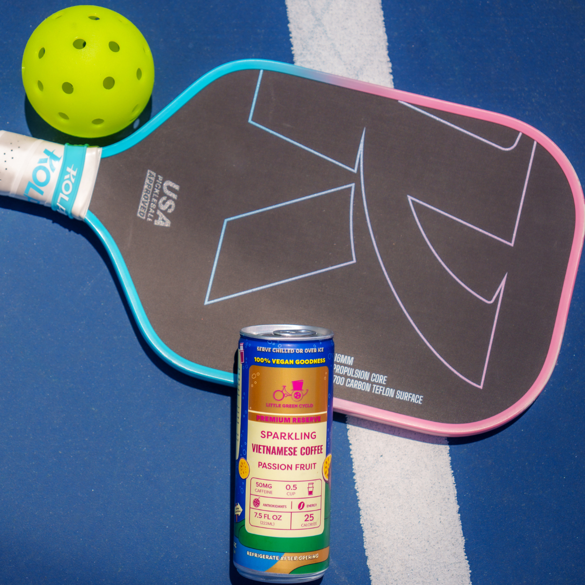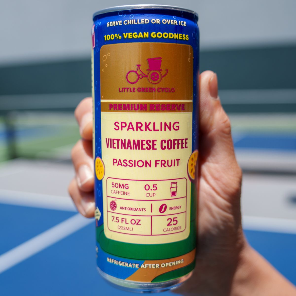 Our sparkling Vietnamese coffee is where tropical fruit meets bold brew.  The juicy tang of real passion fruit lifts the deep, rich flavors of Robusta and Arabica beans - ethically grown on small farms in Vietnam's Central Highlands.  Balanced with a touch of sea salt, this vibrant drink is a perfect harmony of fruity and smooth coffee depth.  Unexpectedly refreshing, unmistakably Vietnamese